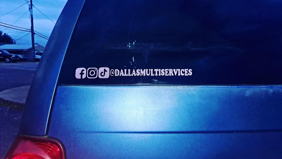Calcomanía de 12″ de largo de Vinilo Permanente para coche resistente al sol y la lluvia para promover tus Redes Sociales.